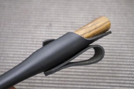 【狩猟特集】 > 【狩猟特集】001狩猟鉈【捌】 110 白鋼 両刃 黒槌目 黒槌丸輪 黒皮ケース 洋樫オイルステン 【晶之作】 【訳有/展示品入替 ノークレームノーリターン:承諾の上注文】