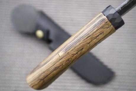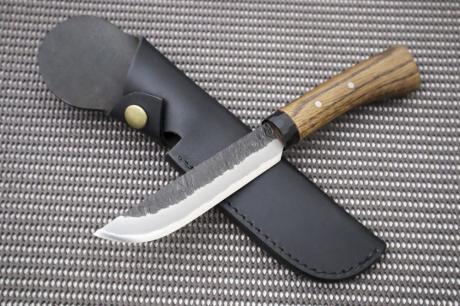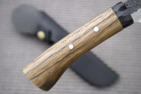 【狩猟特集】 > 【狩猟特集】003狩猟鉈【捌】 110 白鋼 両刃 黒槌目 黒槌丸輪 黒皮ケース 洋樫オイルステン 【晶之作】 【訳有/展示品入替 ノークレームノーリターン:承諾の上注文】