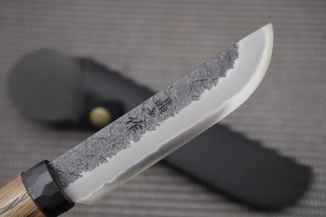 【狩猟特集】 > 【狩猟特集】004狩猟鉈【捌】 105 白鋼 両刃 黒槌目 黒槌丸輪 黒皮ケース 洋樫オイルステン 【晶之作】 【訳有/展示品入替 ノークレームノーリターン:承諾の上注文】