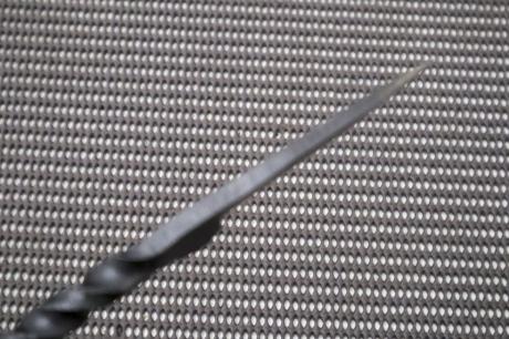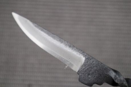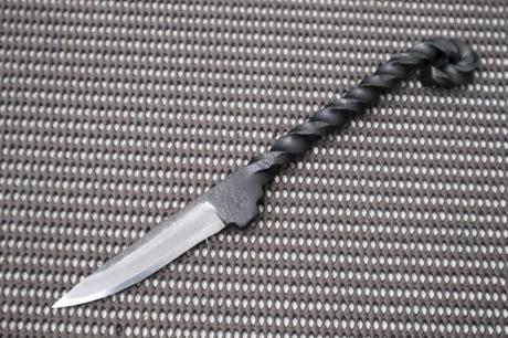 【ダマスカス小刀特集】 > 【ダマスカス小刀特集】005解体捩小刀 70 DM15青2(7+青2+7) 両刃 黒槌目 一体型 フルタングネジレ 【晶之作】 【訳有/展示会展示品:傷有 ノークレームノーリターン:承諾の上注文】