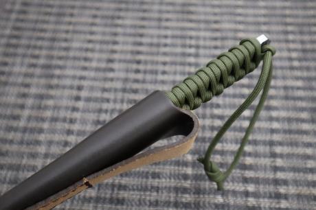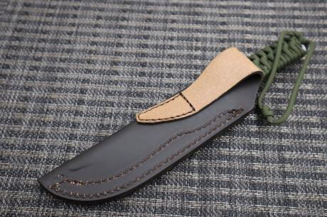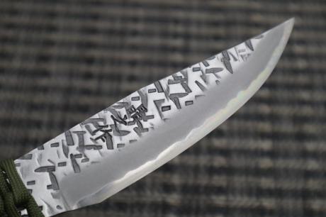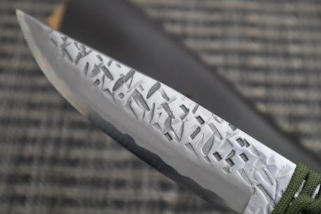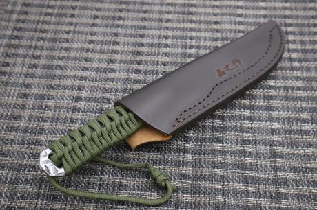【フルタングアウトドア特集】 > 【フルタングアウトドア特集】009 フルタングアウトドアナイフ「独遊」105 白鋼 両刃 槌目磨 フルタング チョコ皮ケース 緑パラシュートコード 【晶之作】 【訳有/展示会展示品:傷有 ノークレームノーリターン:承諾の上注文】