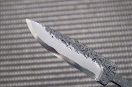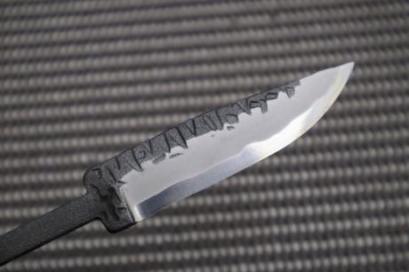 トップページ【鍛造小刀 /3 4.5mm厚/ハンドメイド用】 > 【鍛造小刀 /3 4.5mm厚/ハンドメイド用】004 鍛造小刀 70 土佐オリジナル白鋼 両刃 黒槌目 一体型 一体型 【晶之作】 【訳有/展示会展示品:傷有 ノークレームノーリターン:承諾の上注文】