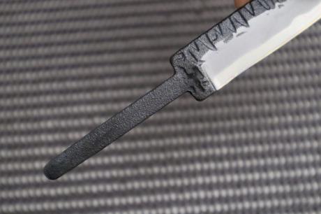【鍛造小刀 /3 4.5mm厚/ハンドメイド用】004 鍛造小刀 70 土佐オリジナル白鋼 両刃 黒槌目 一体型 一体型 【晶之作】 【訳有/展示会展示品:傷有 ノークレームノーリターン:承諾の上注文】[2025:企画番号 145]