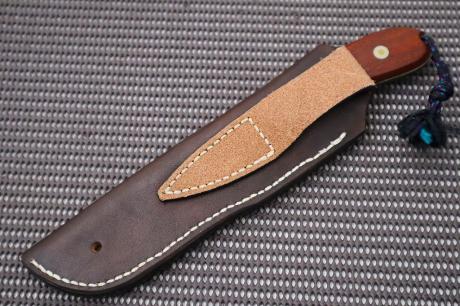 【和式:カスタムナイフ特集】 > 【和式:カスタムナイフ特集】003 ハンディハンター90【鋭牙】 【天然砥石研/手縫牛皮鞘】カスタム【スキナー】 青2 黒漆 フルタング(漆拵) 手縫皮ケース ブビンガ8×4ニューボルト 【海外展示会用/現品限】