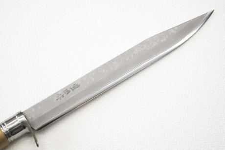 ブレードは土佐鍛冶鍛造 ダマスカス15層青2 切れ味耐久性に優れます。