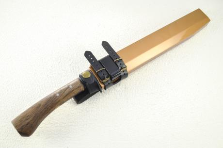 | 表面仕上/血溝/鞘/鞘備考 | 黒槌目/ヒなし/木鞘漆塗(金茶黒漆)/皮バンド(黒色) |