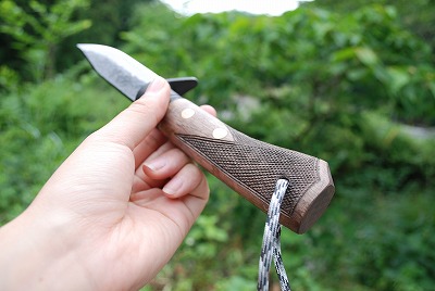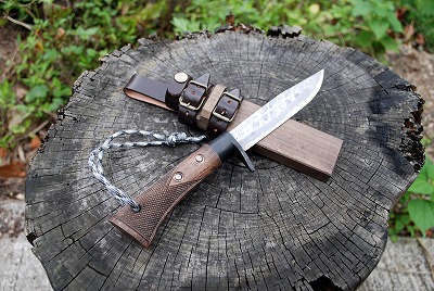 | 重さ/鋼/刃形/ヒ/表面 | 150g/DM15(7+青2+7)/両刃/無し/槌目磨 |