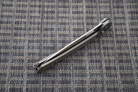 | 鋼/表面/柄/ロック方式 | 420J2+ZDP189+420J2/磨ブラスト/シルバーチタンテェッカー/Folding knife クロスバーロック |