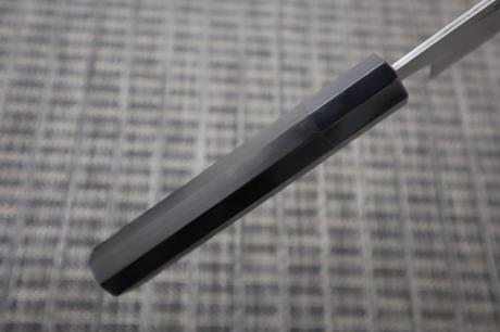 さらに、和式の差し込み柄構造を採用し、手に馴染む八角形の黒檀黒水牛柄によって、あらゆる角度から握りやすく、左右両利きに対応。