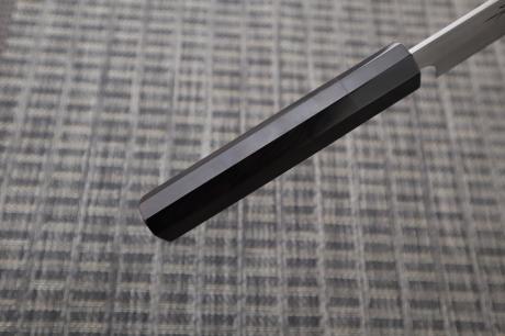 さらに、和式の差し込み柄構造を採用し、手に馴染む八角形の黒檀黒水牛柄によって、あらゆる角度から握りやすく、左右両利きに対応。