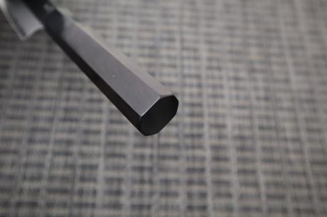 和包丁らしい八角柄は握りやすく、柄には紫檀、鍔には黒檀を用いた高級感あふれる仕上がり。刃を柄に差し込んだ「差し柄」は軽量なので、楽に扱える。