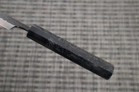 | 柄/鋼 | カーボンファイバー黒八角柄/日立銀紙三号(ステンレス405+銀三+ステンレス405) |