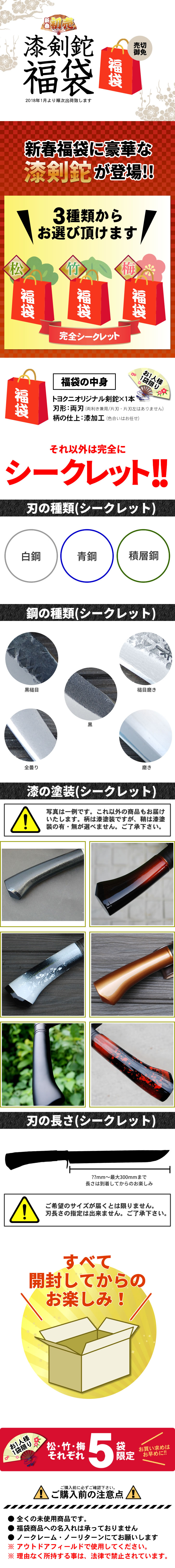 トップページ >企画> 新春初売 漆剣鉈福袋 2018/ 通販 販売 鍛冶屋トヨクニ