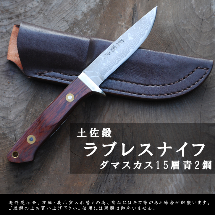 土佐鍛 ラブレスナイフ ダマスカス15層青2鋼